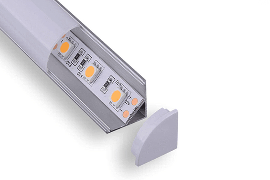 PERFIL DE ALUMINIO SOBREPUESTO ESQUINERO CURVO PARA CINTA LED, USO INTERIOR IP20, CUBIERTA DE POLICARBONATO OPAL, 2.000MM LARGO, 15,8MM ANCHO, 15,8MM ALTO